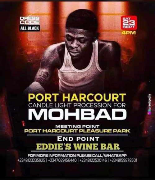 Mohbad candle night movement in Port Harcourt will take place today at 4pm Nigeria time at Port Harcourt pleasure pack #justiceformohbad